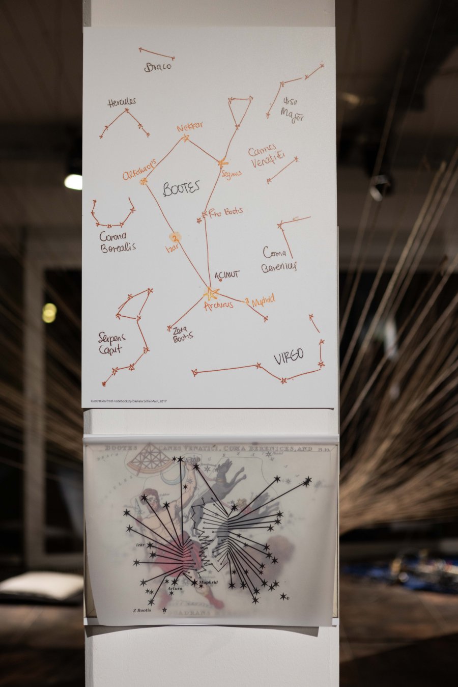 “Der Klang, den Khipu aussendet, ist das sonifizierte, eigentlich unhörbare Rauschen aus dem Weltraum, das Flüstern der Leere, besucht von Geistern, eine himmlische Partitur, die Klänge der Sphären, die Stimme der Stille.” Constanza Piña Pardo